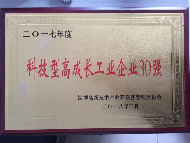公司荣获2017年度淄博市科技型高成长企业30强